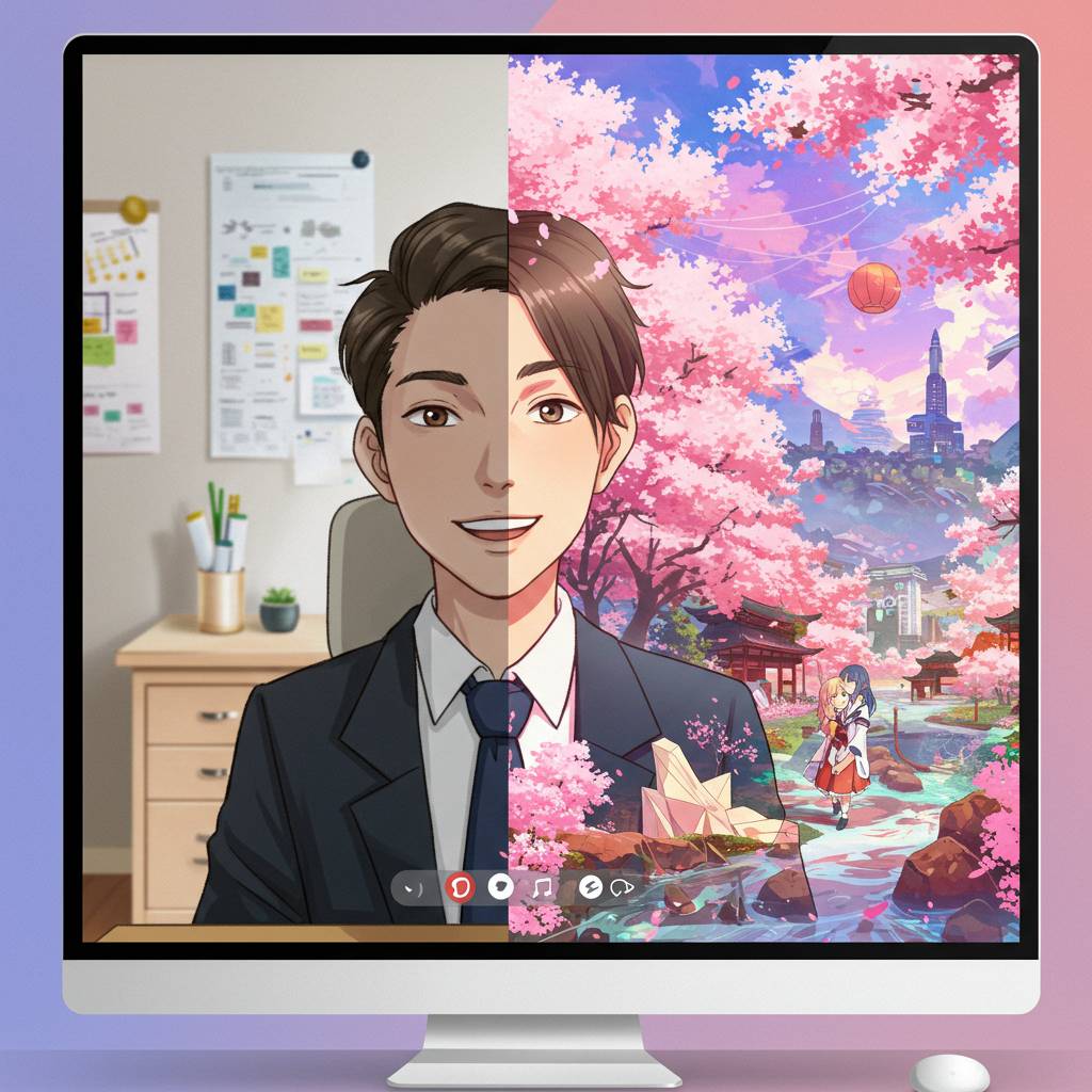 リモートワークが当たり前になった今、WEB会議の背景に個性を出したいと考えている方も多いのではないでしょうか。特にアニメファンにとって、好きなキャラクターの世界に入り込める AI 背景は夢のような機能です。実は最新技術を使えば、簡単にあなたのビデオ通話をアニメワールドに変えることができるんです!