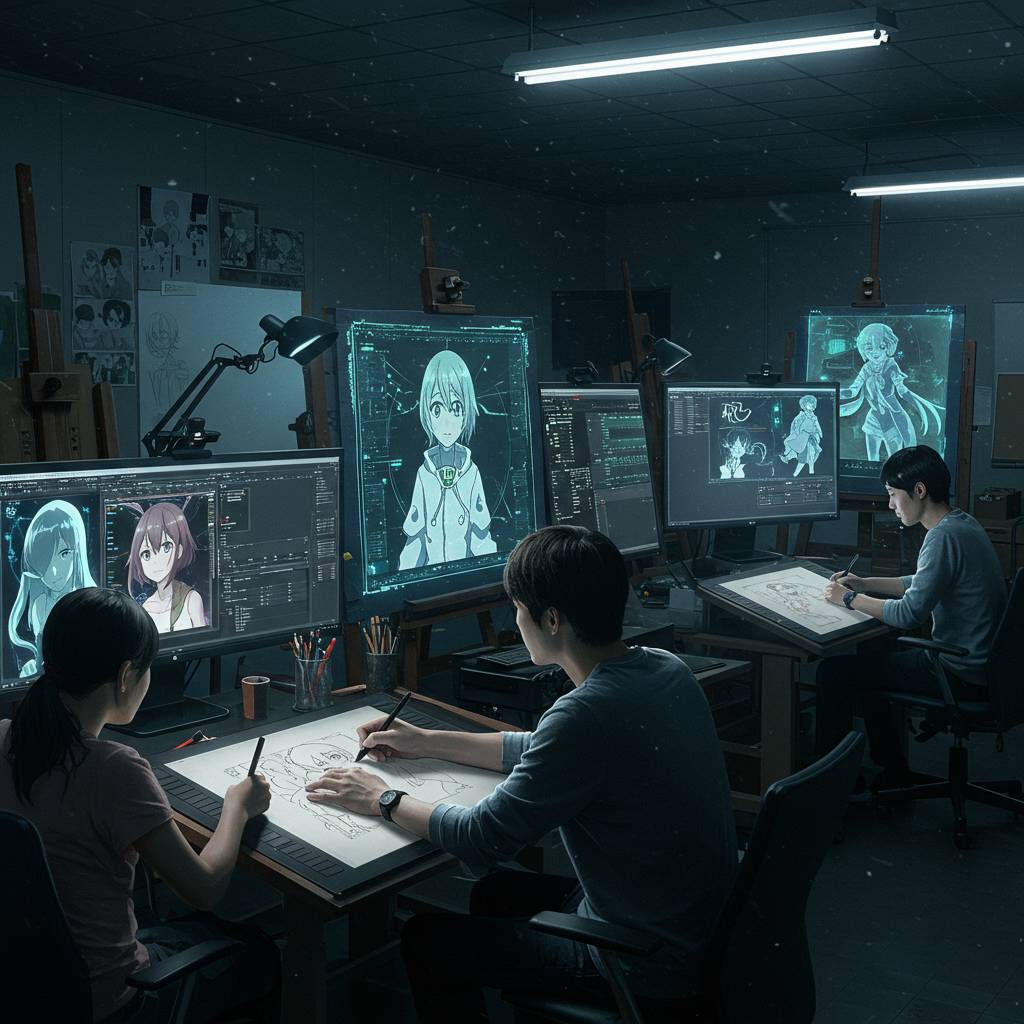 京都アニメーションやufotableなどの大手スタジオでは、AIに仕事を奪われる不安を抱くスタッフのために「AI活用スキル講座」を開催。単なる抵抗ではなく、新技術を味方につける方針に舵を切っている。